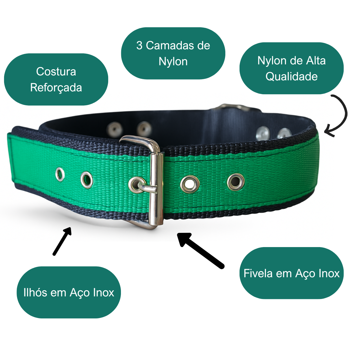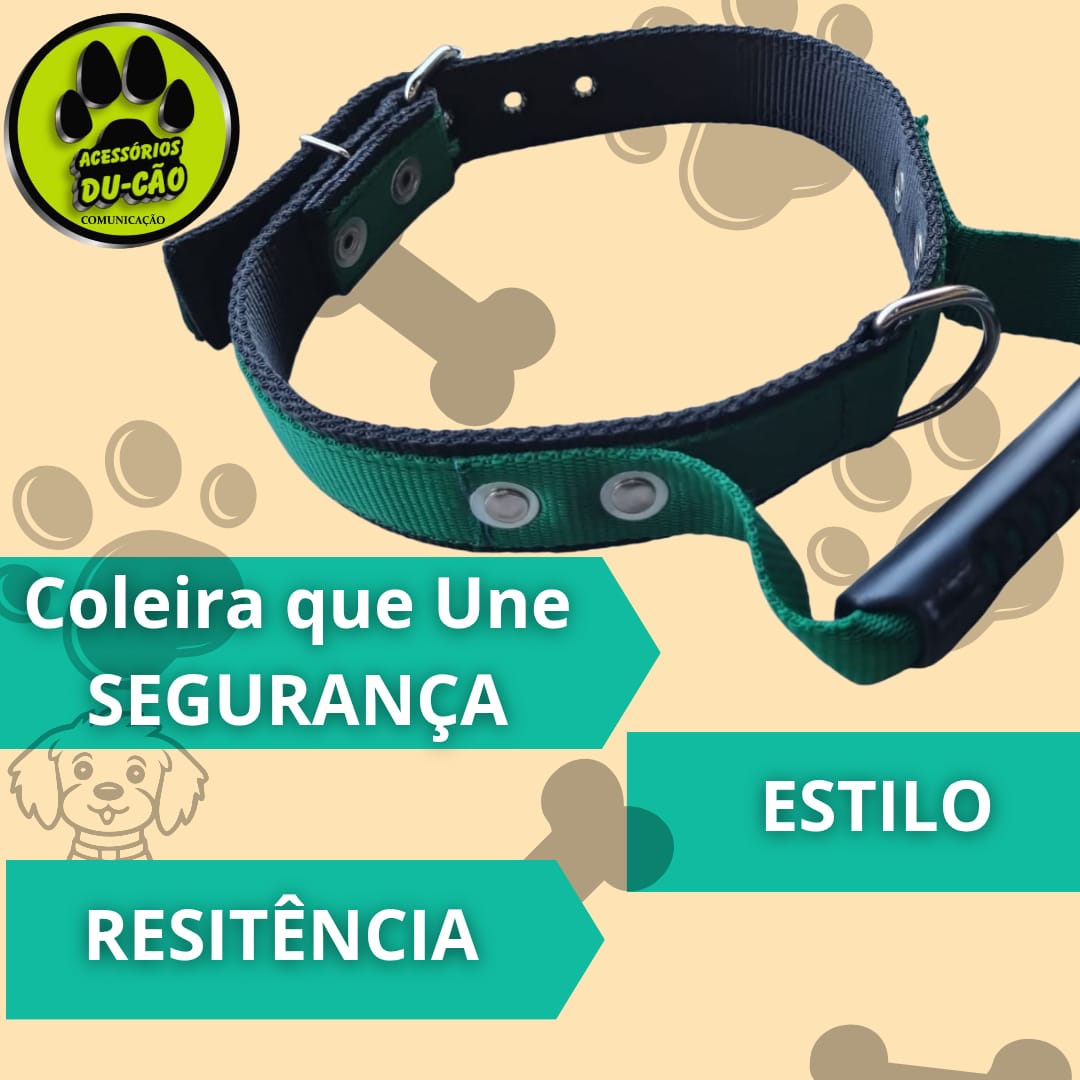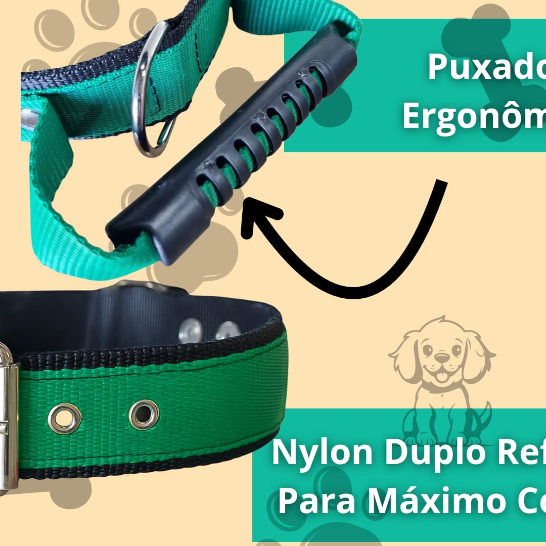Coleira de Nylon Dupla com Puxador e Guia – Linha Profissional