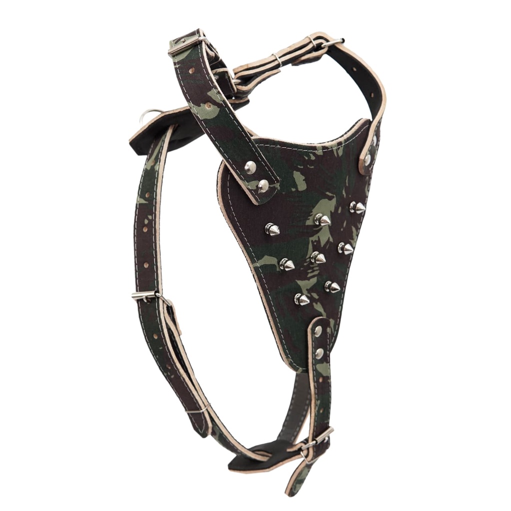 Peitoral Couro Pit Bull Camuflado com Cravo – Linha Premium Reforçada (Fabricante / Distribuidora)
